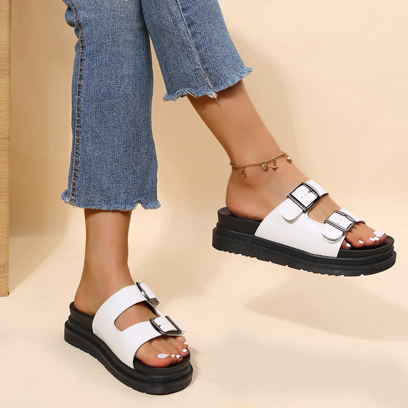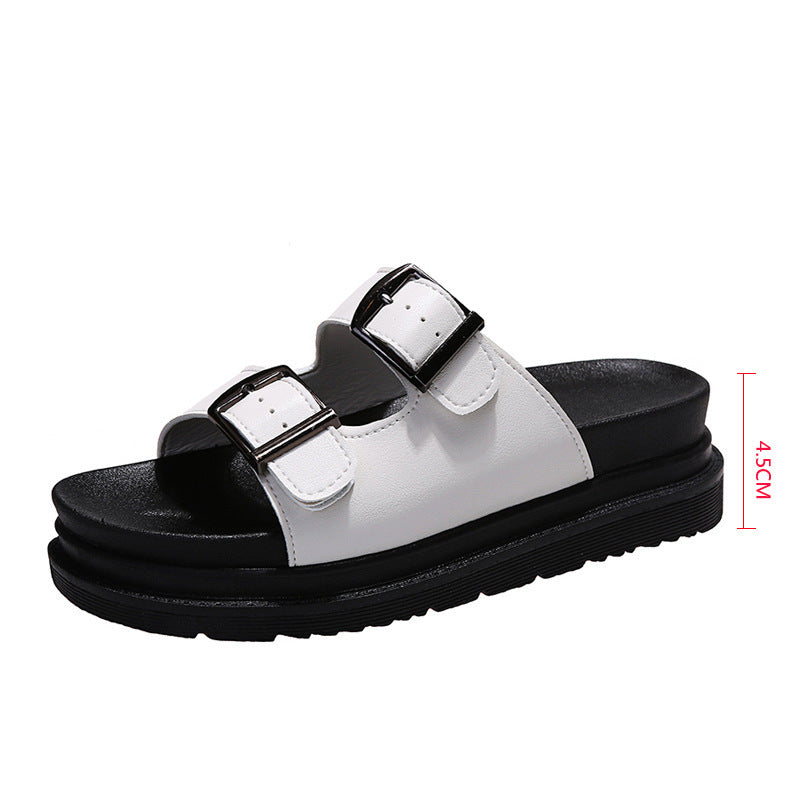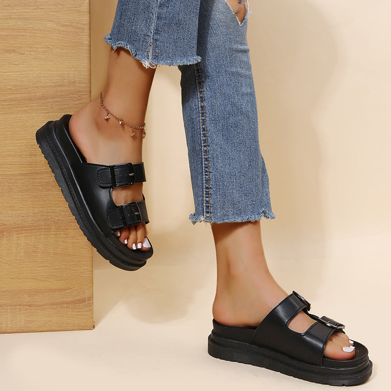 Women Slippers Double Buckle Platform Sandals British Style Shoes
