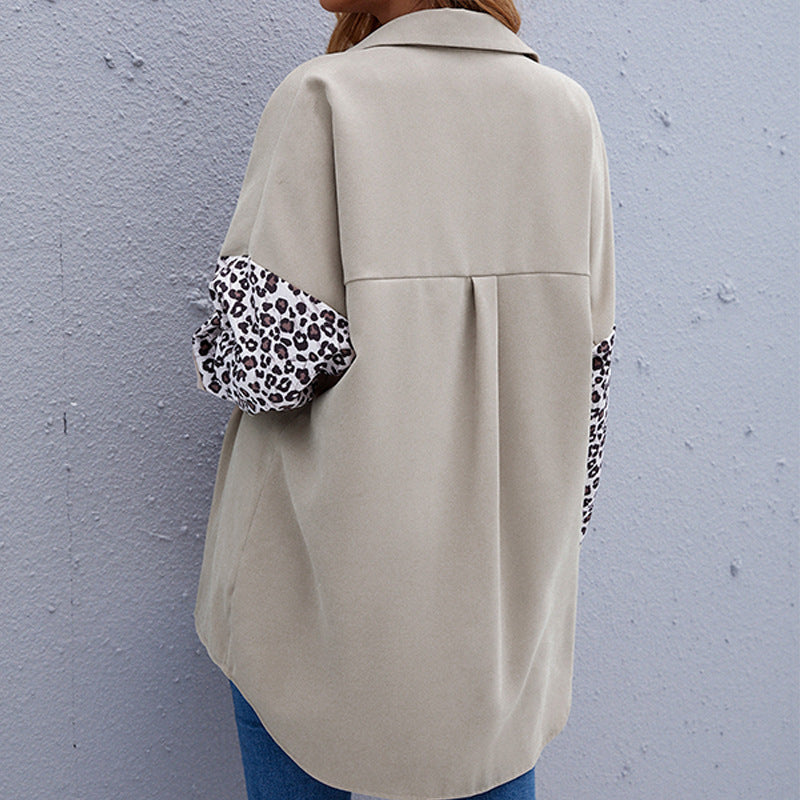 Shirt Jacket Lapel Shirt Stitching Leopard Print Long-sleeved Cardigan Shirt Women