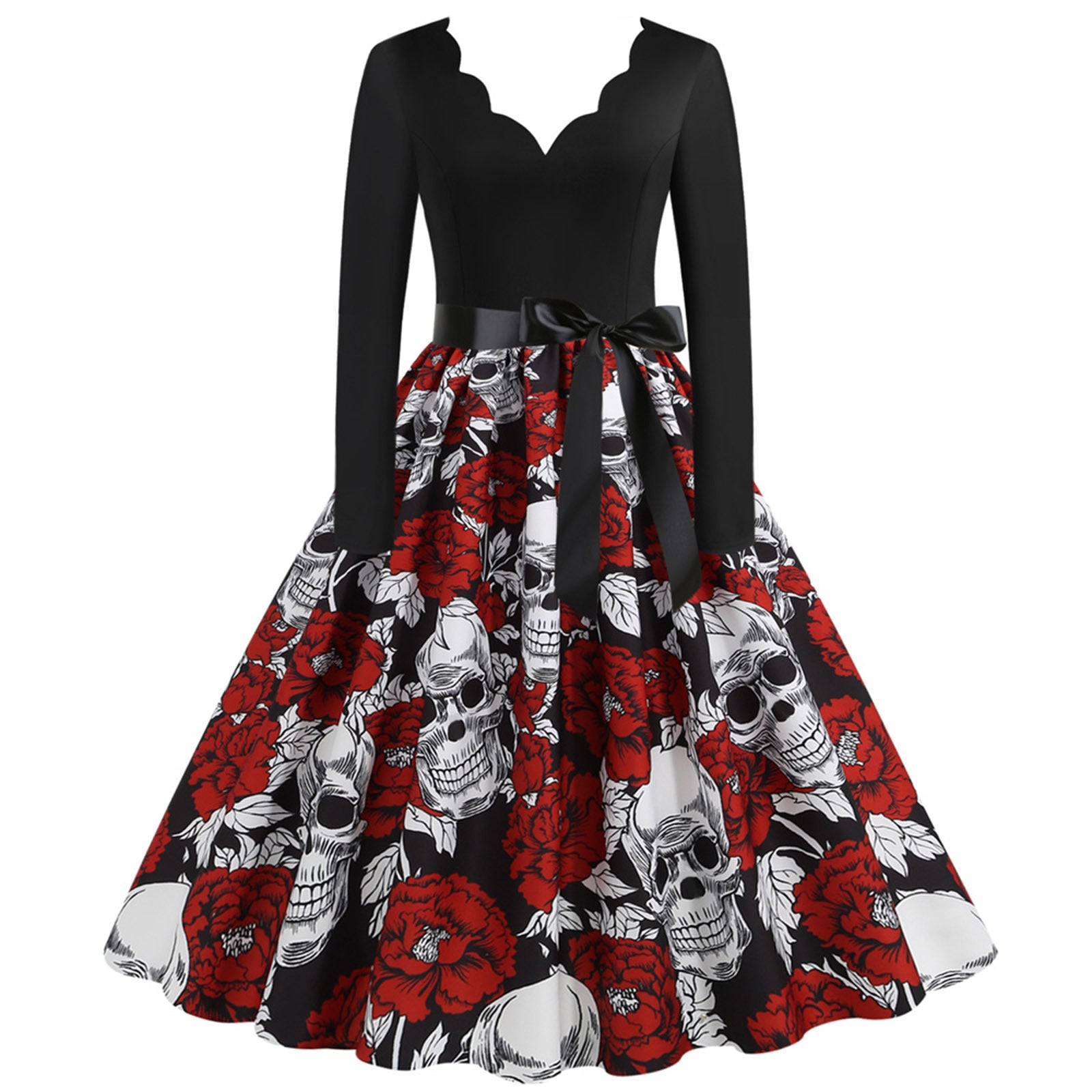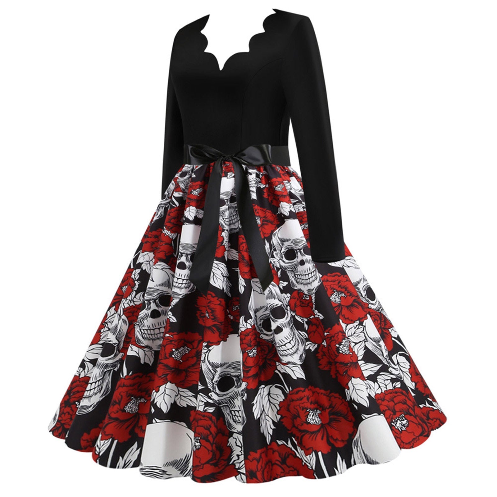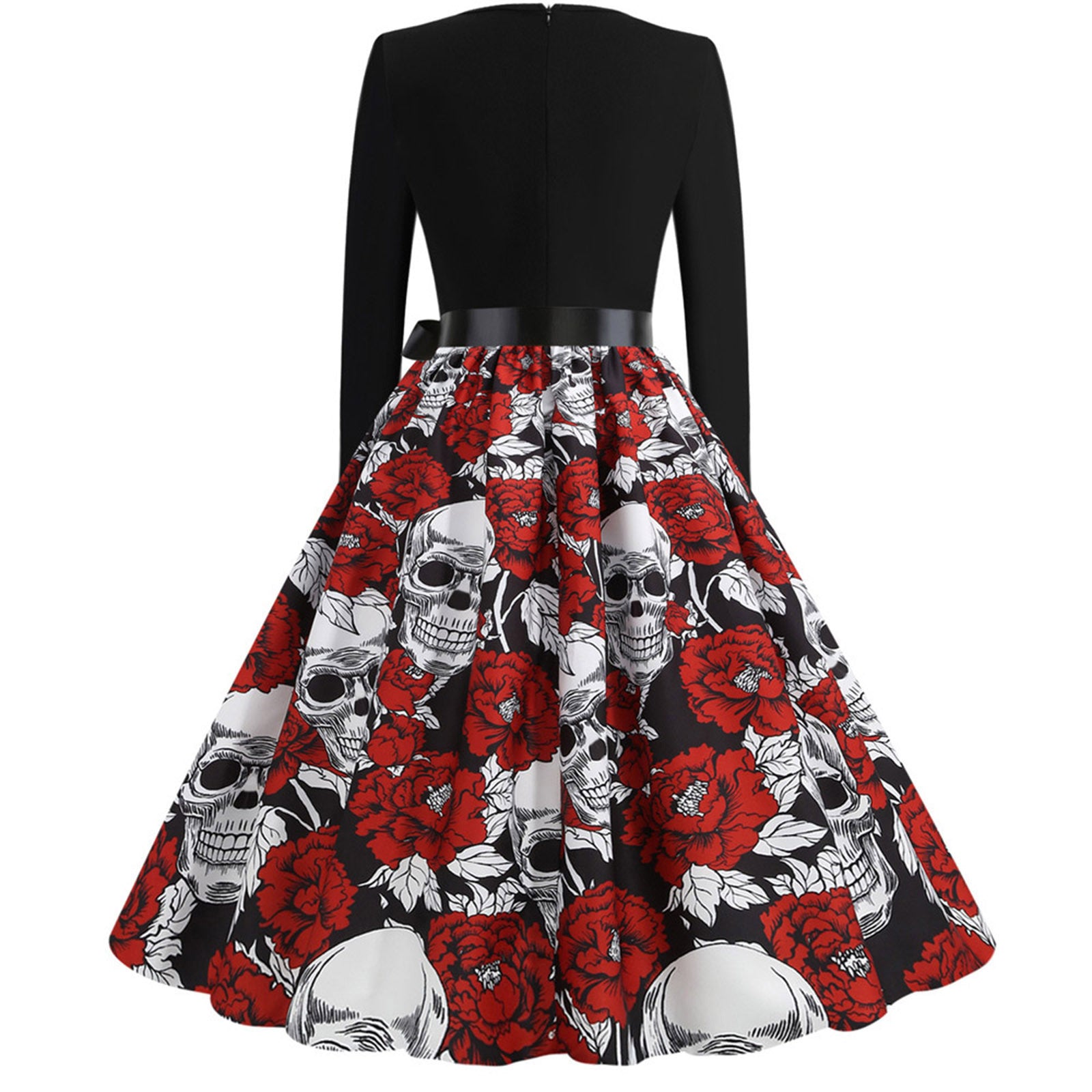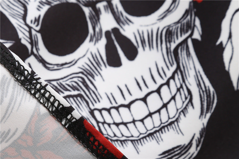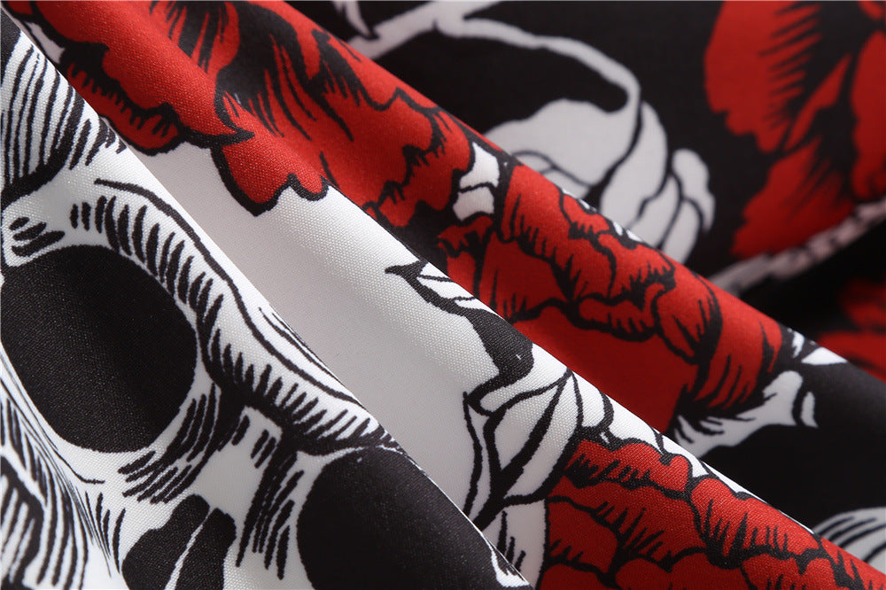 Step into a world of gothic charm with our Slim Fit Skull Print Swing Dress. This dress combines a flattering slim fit with a playful swing skirt, creating a silhouette that flatters every figure. The bold skull print adds a touch of edginess, making it perfect for those who love to stand out. Whether you're attending a themed party, a night out, or simply want to add a unique piece to your wardrobe, this dress is sure to turn heads.