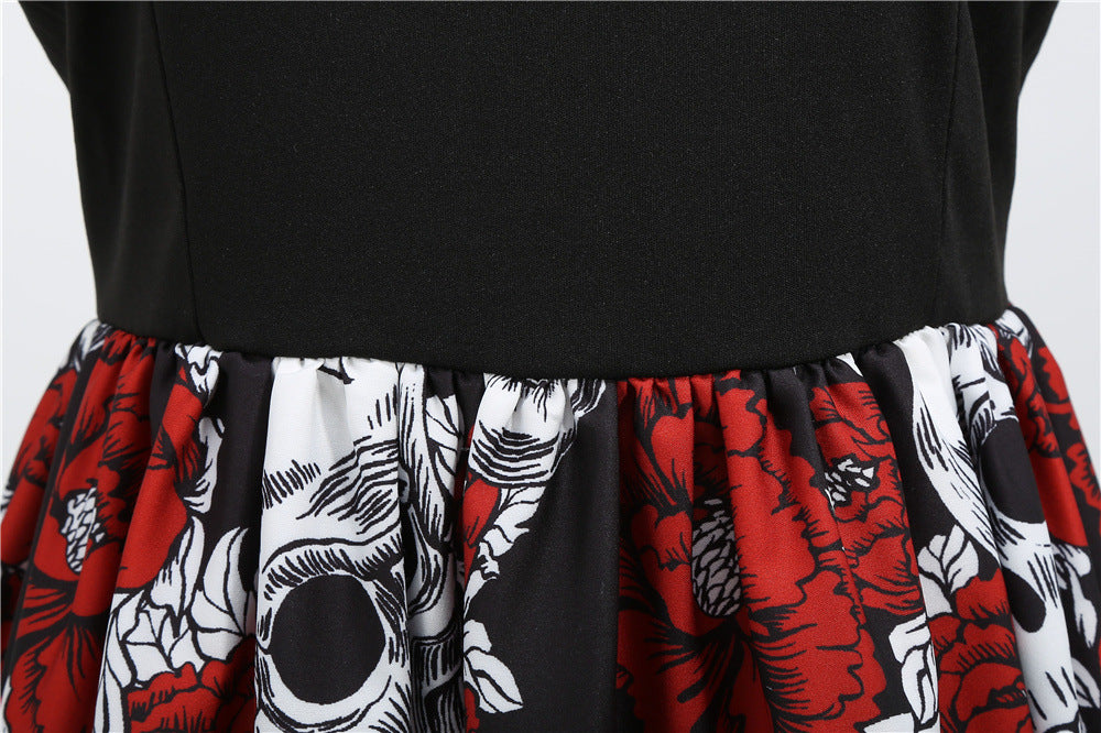Slim Fit Skull Print Swing Dress